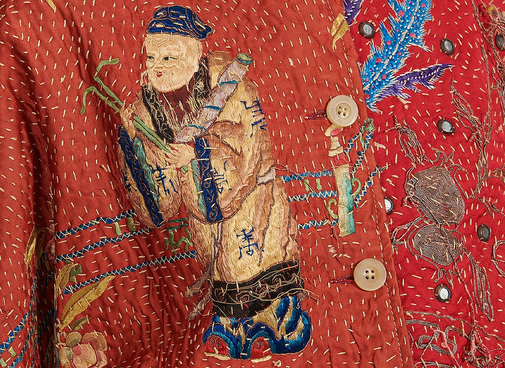 Signature textiles to the Qing Dynasty (1644-1911), our collection of resplendent 19th-century Chinese silk chronicles a rich storytelling culture. The rarest of these are yellow in hue – the symbolic colour of the five great Emperors – and include the ‘Forbidden’ or Peking stitch, which was solely reserved for use by the master embroiderers of the Forbidden City, the historical seat of the Imperial household in Beijing. Each piece displays stylised depictions of flora, fauna and family life revealed in intricately laid out scenes, and is meticulously restored and repurposed into contemporary cuts that highlight the impeccable craftsmanship.