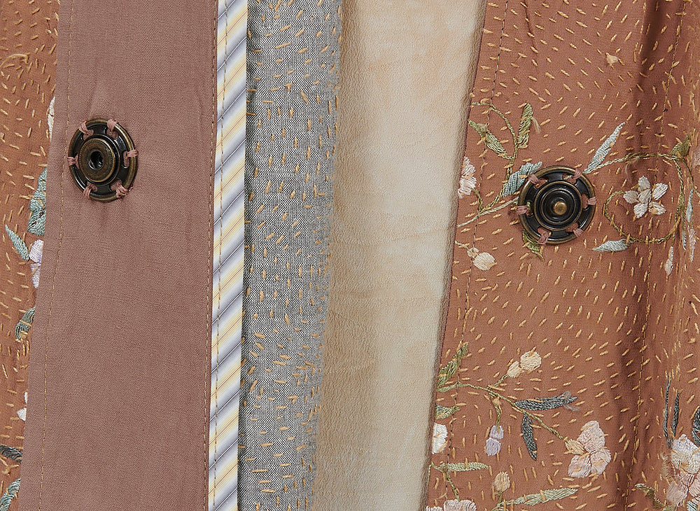 Crafted from heavily embroidered silk broadcloth in an array of colourful shades, piano shawls were originally designed as decorative coverings to keep the wood and keys free from scratches and dust. By the 1920s Jazz Age and the influence of Orientalism in Western fashion design, they were adopted as an elegant alternative to evening dress jackets when gowns became sleeveless and cut low at the back. In transforming these historical textiles for future wear, this is one of our most versatile fabrics, which becomes anything from lightweight tops to bedecked swing coats in artfully matched tones.